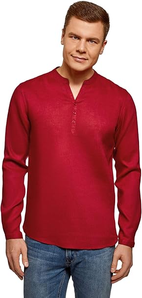 Oodji Ultra Uomo Camicia In Lino Senza Colletto Amazon It Abbigliamento