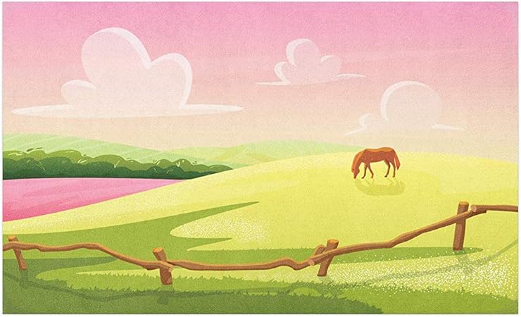 Marlon Kitty Zerbino Di Campagna Disegno Di Stile Del Fumetto Di Paesaggio Rurale Astratto Con Cavallo Su Una Collina Tappetino Amazon It Casa E Cucina