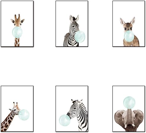 Zchpdd Nordic Piccolo Fresco Semplice Murale Che Soffia Palloncino Zebra Elefante Canguro Koala Animale Del Fumetto Spruzzo Core Pittura 6 Pz 15x20 Cm 6 Pz Amazon It Casa E Cucina