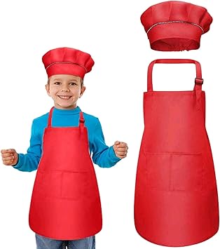 Wellxunk Bambini Grembiule E Cappello Da Cuoco Set Grembiuli Da Chef Con 2 Tasche Per Ragazze Ragazzi Grembiule Per Bambini Regolabile Unisex Abbigliamento Da Disegno Per Bambini Dell Asilo Rosso Amazon It Giochi E