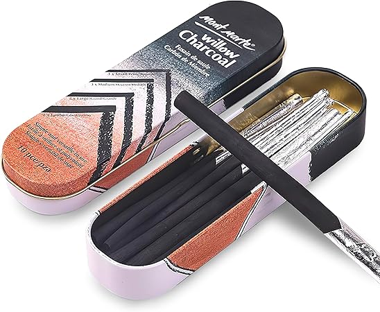 Mont Marte Carboncino Da Disegno 10 Pezzi In Diverse Dimensioni Carboncino Disegno Nero Matite Carboncino In Astuccio Di Alluminio Matite Da Disegno Per Disegni Di Grande Effetto Amazon It