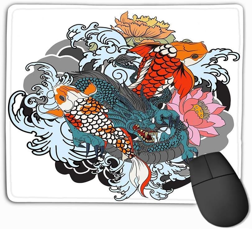 Tappetino Per Mouse Disegnato A Mano Drago Koi Pesce Fiore Tatuaggio Braccio Carpa Giapponese Linea Disegno Libro Da Colorare Immagine Drago Disegnato A Mano Rettangolare Gomma Mouse Pad 30 X 25 Cm
