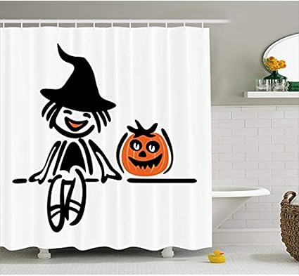 Yeuss Tenda Da Doccia Strega Merry Happy Kid Con Tema Di Disegno Stilizzato Di Zucca Cercando Bambino Stilizzato Arredamento Da Bagno In Tessuto Set Con Gancio Arancio Nero 72 X72 Amazon It Casa E Cucina