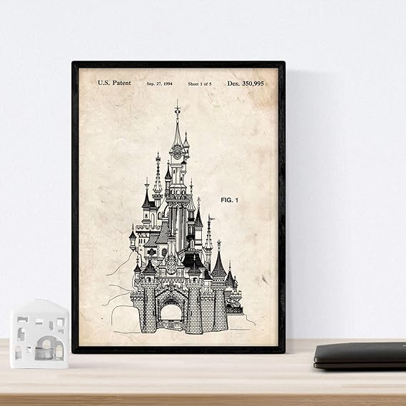 Nacnic Stampa Artistica Vintage Brevetto Castello Disney Disegno Antico Con Sfondo Vintage Vecchi Brevetti Architettura Progetti Stampato Su Carta Da 250 Grammi Di Alta Qualita Amazon It Casa E Cucina