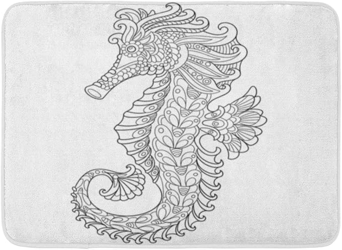 Tappetino Da Bagno Zentangle Cartone Animato Cavalluccio Marino Schizzo Bianco Adulto Antistress Disegni Da Colorare Emblema Tatuaggio Doodle Decorazioni Da Bagno Tappeto Amazon It Casa E Cucina