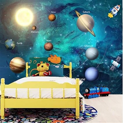Carta Da Parati Non Tessuta 3d3d Wallpaper Space Universe Camera Dei Bambini Cielo Stellato Planet Wallpaper 3d Stereo Cartoon Mural 400 280cm Amazon It Fai Da Te