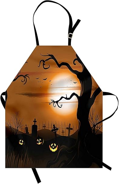 Grembiule Di Halloween Albero Senza Foglie Creepy Con Rami Di Twiggy Di Notte Nel Cimitero Disegno Grafico Grembiule Da Cucina Unisex Con Collo Regolabile Per Cucinare Cottura Di Giardinaggio Marro Amazon It Casa
