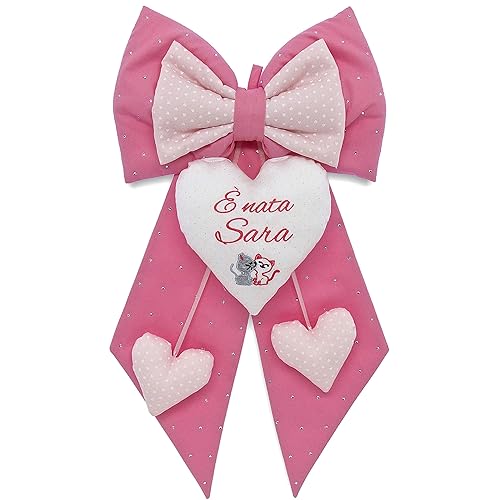 Fiocco Nascita Bimba Rosa In Tinta Unita E Rosa A Cuoricini Da Personalizzare Coccarda Nascita Bimba Con Disegno E Frase Personalizzabile Amazon It Handmade