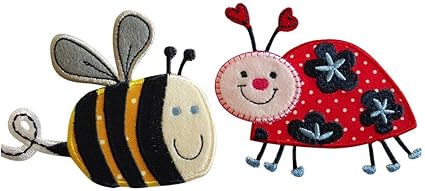 Ape 9x8cm Coccinella 9x7cm Disegno Dell Ape Con Intarsio Bicolore Giallo A Bollini E Bianco Ricamati Per Esaltare I Dettagli Dell Insetto Ali Bicolore E Antenne Blu Coccinella Stilizzata Su Tessuto Rosso Con Ricami