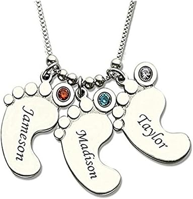 La Collana Di Disegno Di Piedi D Argento 925 Personalizzati Presenti Puo Inciso Tre Nomi E Tre Birthstone Amazon It Gioielli