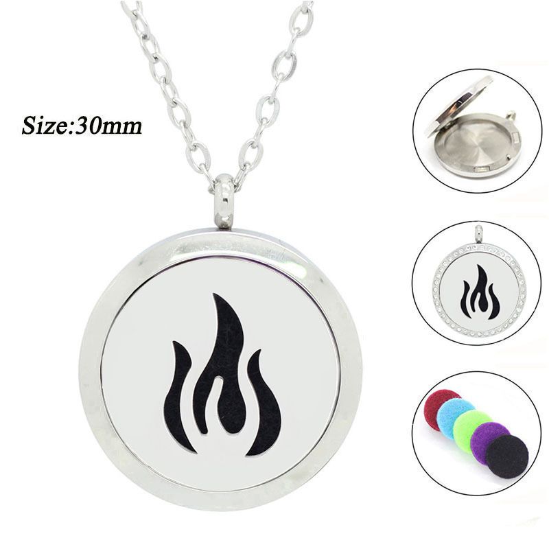 Acquista Nuovo Arrivo 30mm Magnete Aromaterapia Ciondolo In Acciaio Inox 316l Diffusore Di Olio Locket Collana Disegno Fiamma A 2 96 Dal Tastepanpan Dhgate Com