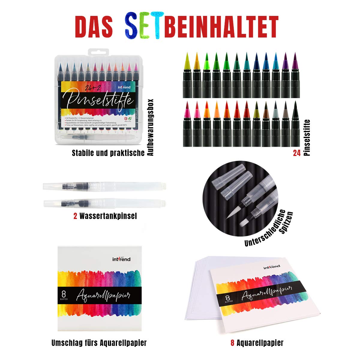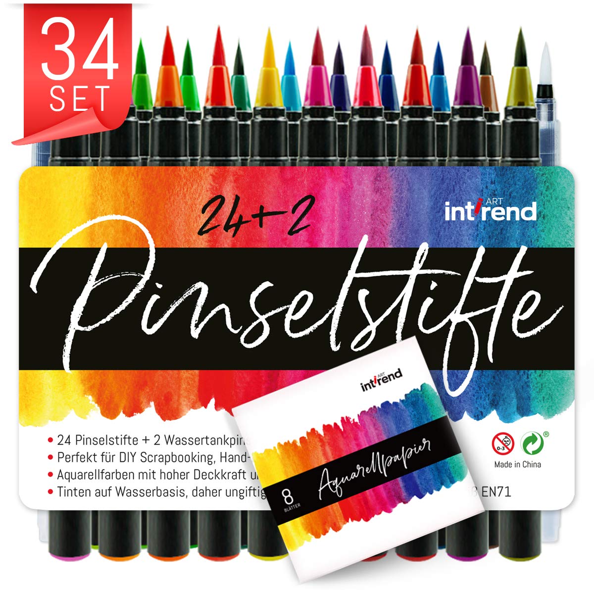 Lettering Pens Per Disegnare E Dipingere 2 Pennelli Ad Acqua E 8 Fogli Di Carta Per Aquarelli 24 Colori Acquerelli Calligrafia Brush Pen Set Per Diario Int Rend Pennarelli Acquerellabili Materiali Per Hobby