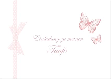 Invito Per Il Mio Battesimo Biglietto D Invito Per Battesimo Biglietto Per Battesimo Per Una Ragazza Con 2 Farfalle Come Disegno E Un Fiocco Grafico Regalo In Rosa Con Busta 4 Amazon It Cancelleria