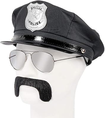 Set Di Travestimento Da Poliziotto Nero Kv 124 3 Pezzi Cappello Occhiali Da Sole Baffi Per Carnevale Halloween Festa A Tema Adulti Uomo Donna Amazon It Giochi E Giocattoli