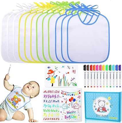 Lenbest 12pcs Diy Bavaglino Bambini Bandana Bavaglini Neonato Bambino Impermeabile Per Disegnare Con 12 Pezzi Pennarelli Ttessili E 3 Stencil Crea Un Design Unico Per La Baby Shower Amazon It Prima Infanzia