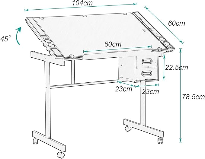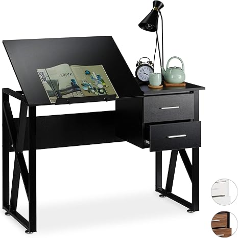 Tavolo Da Disegno Piano Inclinabile Con 2 Cassetti Struttura In Acciaio Artistico Nero Senza Feci Jz237133