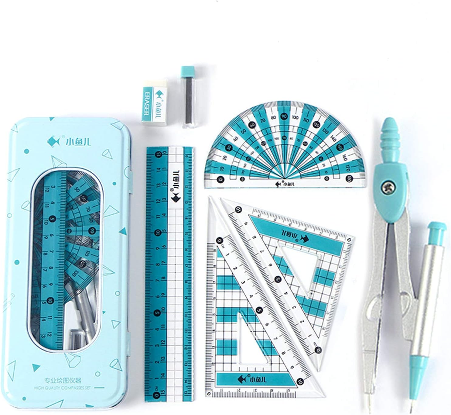 Mhwan Compasso Disegno Tecnico 18x8 Cm 7 Pezzi Compasso Set Di Bussole Per Geometria Con Righello Goniometro Per Gomma Ricariche Per Matita Per Matematica E Ingegneria Per Studenti Materiale Didattico Cancelleria E