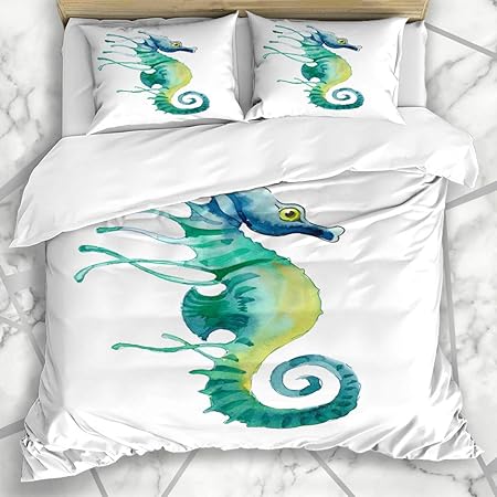 Set Copripiumino Decorativo Corallo Acquarello Disegno Cavalluccio Marino Disegno Pesce Disegnato A Mano Cavallo Design Biancheria Da Letto In Microfibra Con 2 Federe Cuscino Amazon It Casa E Cucina