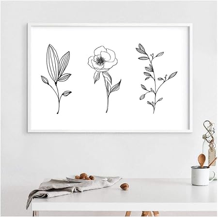 Asasi9 Decorazioni Minimaliste Minimal Wall Art Matita Disegni Di Foglie Tela Pittura Contorno Stampe Botaniche Nero Bianco Picture Wall Poster 60x80cm Senza Cornice Amazon It Casa E Cucina