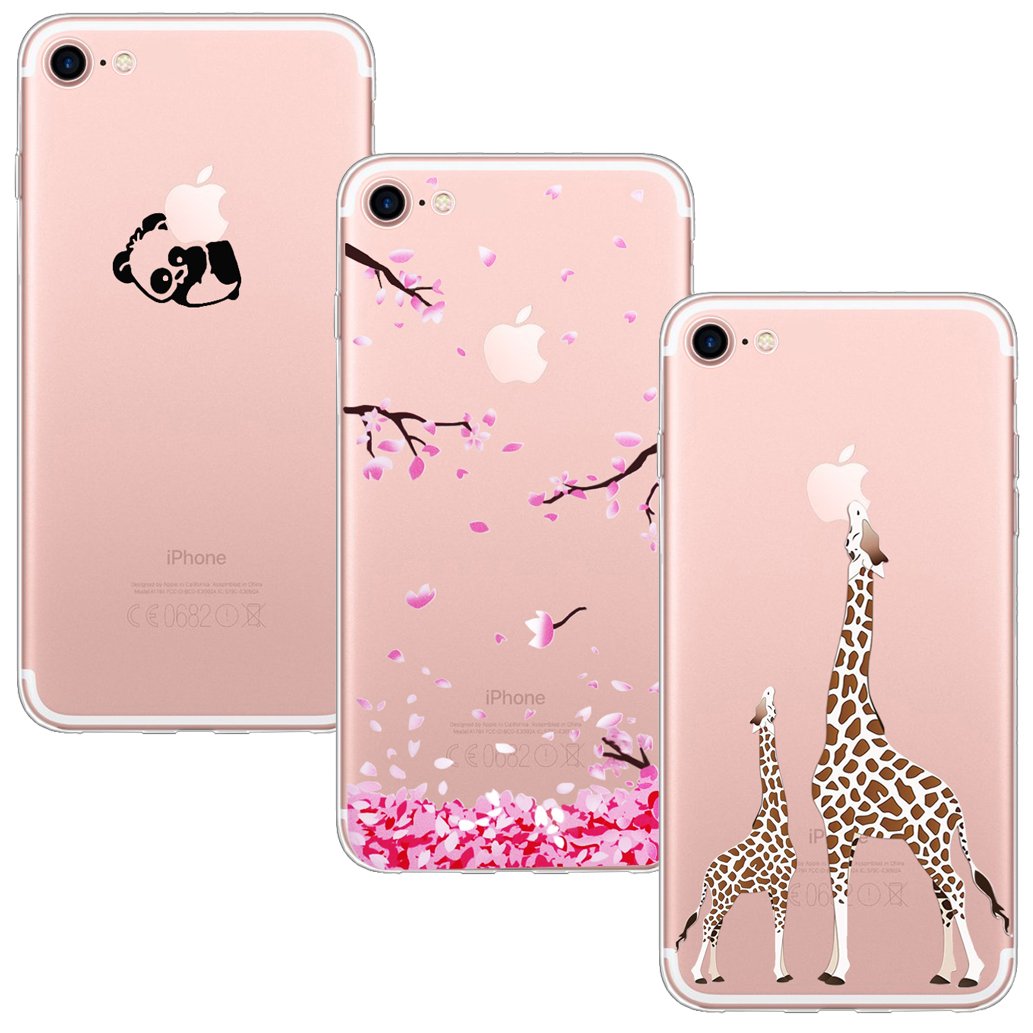 Yokata 3 Pack Cover Per Iphone 7 Cover Iphone 8 Custodia Silicone Trasparenti Con Disegni Case Caso Gomma Tpu Morbido Ultra Slim Antiurto Protettiva Cover Cervo Fenicottero Aereo Di Carta