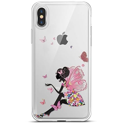 Felfy Trasparente Cover Compatibile Con Iphone Xs Max Custodia Silicone Morbido Ultra Sottile Slim Cover Con Trasparente Con Disegni Bling Glitter Brillantini Dipinto Disegni Tpu Shiny Case Ragazza Accessori Decorativi Sticker Decorativi