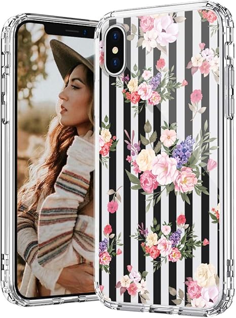 Mosnovo Cover Iphone Xs Max Fiori A Strisce Nere Floral Flower Trasparente Con Disegni Tpu Bumper Con Protettiva Custodia Posteriore Per Iphone Xs Max Black Stripes Flowers Amazon It Elettronica