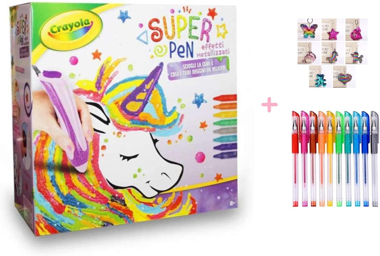 Crayola Super Pen Effetti Metallizzati Unicorno Sciogli La Cera E Crea I Tuoi Disegni Regalo Bimbo Omaggio 10 Penne Glitterate Portachiave Girabrilla Amazon It Giochi E Giocattoli