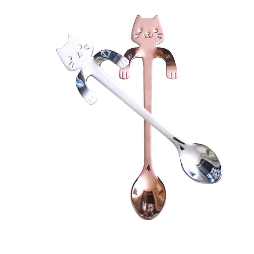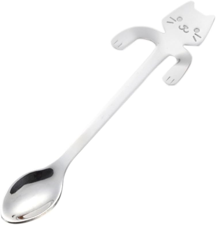 Vkospy Carino Disegno Del Gatto Di Sorriso Del Gatto Cucchiaio Di Caffe Del Cucchiaio Dellacciaio Inossidabile Manico Lungo Cucchiaino Cucchiaio Del Gelato Posate Cucchiaini Da Caffe