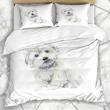 Copripiumino Set Cucciolo Di Pelliccia Maltese Cane Piccola Acquerello Wildlife Paint Natura Disegnato A Mano Disegno Carino Disegno Di Razza Biancheria Da Letto In Microfibra Con 2 Guanciali Amazon It Casa E Cucina