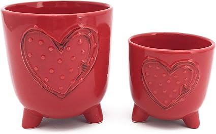 Set X 2 Portavaso Rosso In Ceramica Con Piedi Con Cuore Disegnato Picc D 10 5 H 10 Gr D 13 H 14 Cm Amazon It Casa E Cucina