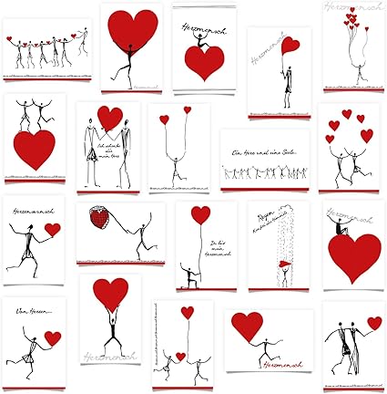 Set Con 20 Pezzi Xxl Diversi Cuore Della Persona Cartoline 12 X 17 5 Cm In