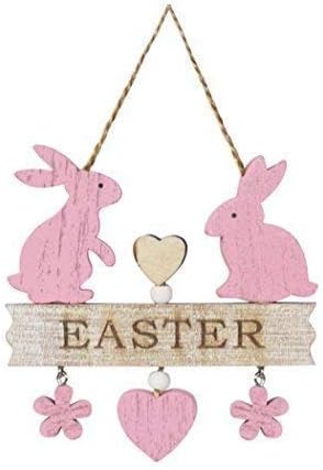 Robelli In Legno Pasqua Decorazioni Da Appendere Segni Vari Disegni Coniglio Rosa Insegna Amazon It Casa E Cucina
