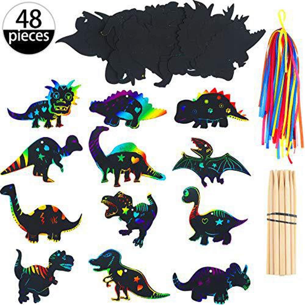 48 Pezzi Disegni In Carta Grattare Arcobaleno Regalo Compleanno Dinosauro Nero Fai Da Te Con 48 Pezzi Nastri Colorati E 12 Pezzi Stilo In Legno Festa Di Compleanno Forniture Di Gioco Ornamenti Gti Com Ng