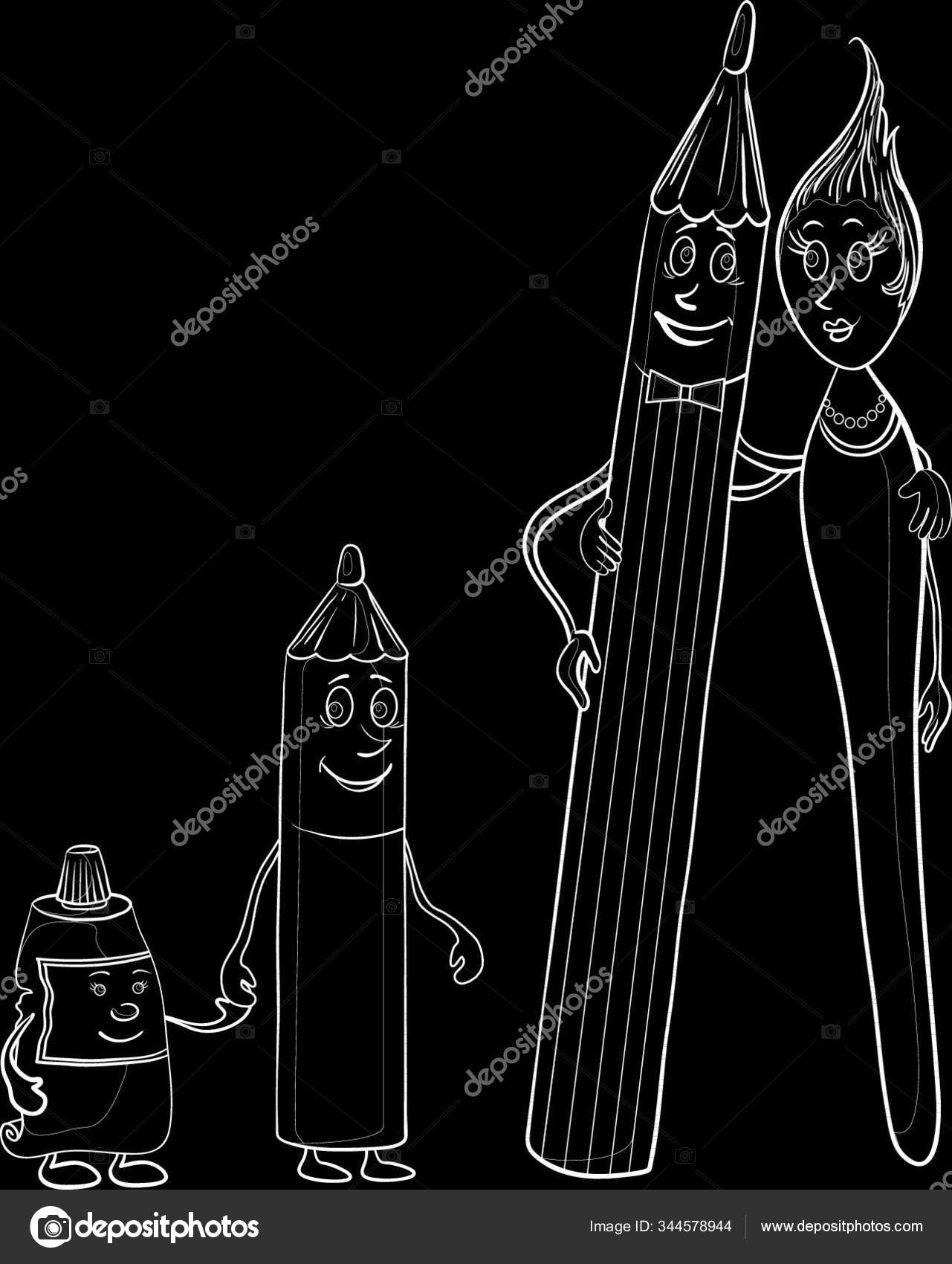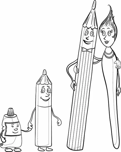 Kartun Keluarga Alat Tulis Pensil Kuas Tabung Cat Kontur Vektor Stok Vektor C Yayimages 344578944