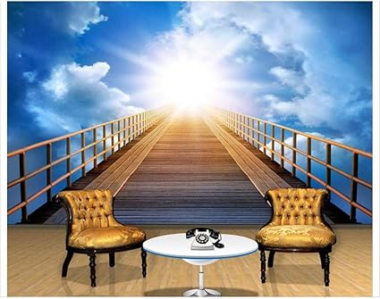 Hhlwl 3d Murale Personalizzato Murale Bellezza Non Tessuto Zenith Disegnare Il Cielo Blu Nuvole Bianche Ponte Di Legno Affreschi Carta Da Parati 200cmx140cm Amazon It Fai Da Te