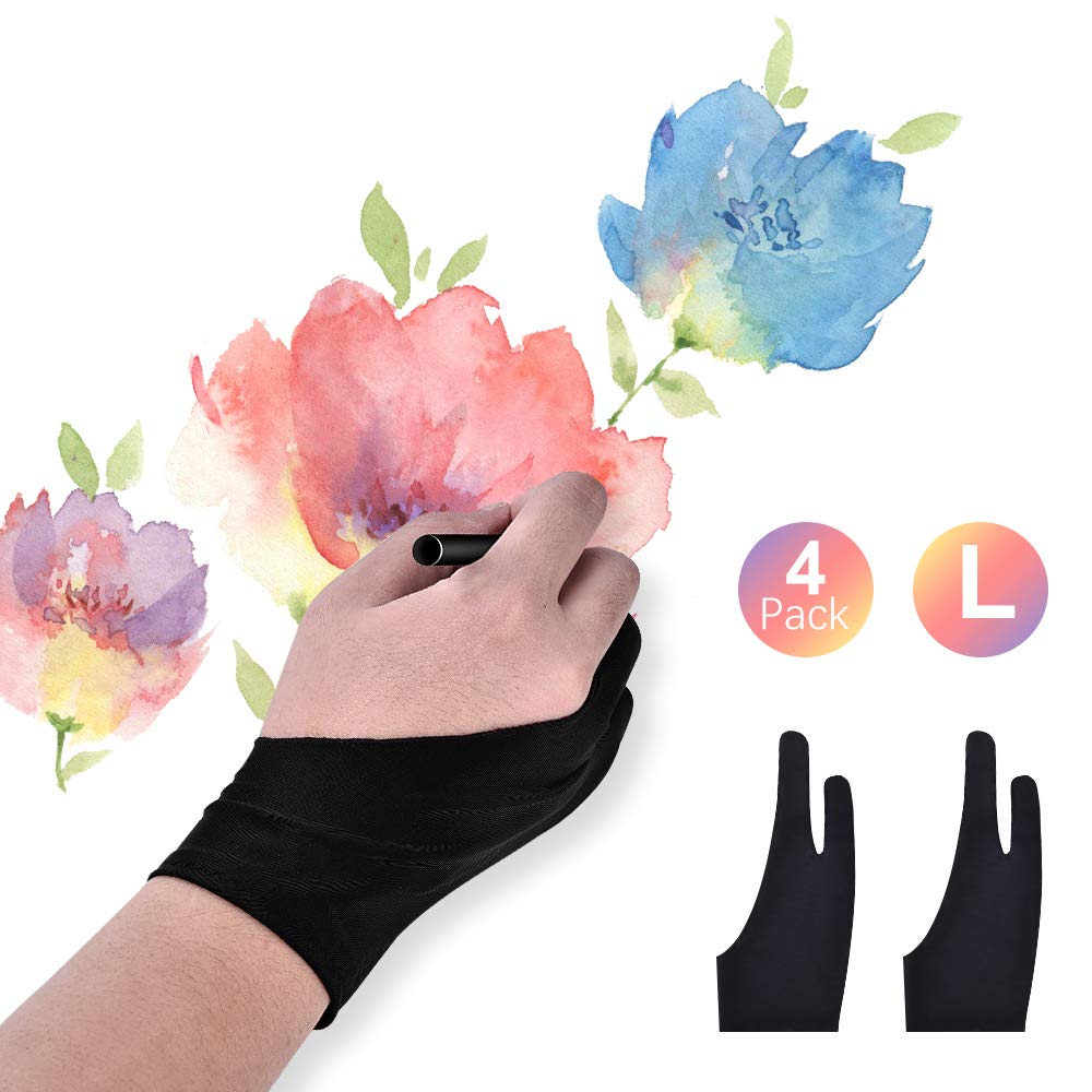 Nero L Otraki Guanto Tavoletta Grafica 4 Pcs Due Dita Guanti Da Disegno Artistico Antivegetativa Artist Gloves Per Mano Destra E Mano Sinistra Guanto Per Disegnare Artista Tastiere Mouse E Periferiche Di