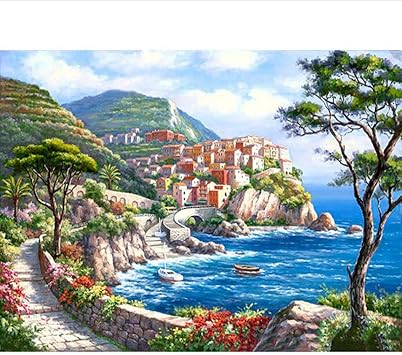 Waofe La Pittura Di Paesaggio Marino Di Mare Mediterraneo Pittura By Numbers Moderna Casa Di Arte Di Parete Per Opere D Arte Regalo Unico 40x50 Cm Amazon It Fai Da Te