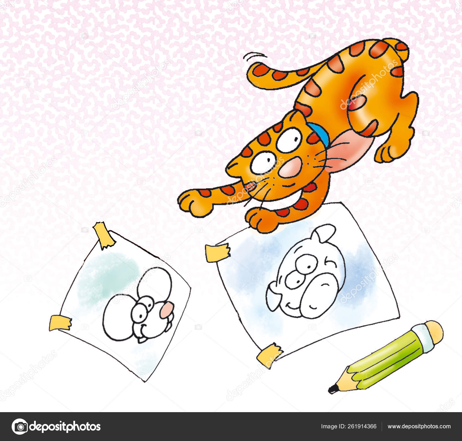 Gatto Disegna Con Matita Topo Maiale Stock Photo C Yayimages 261914366