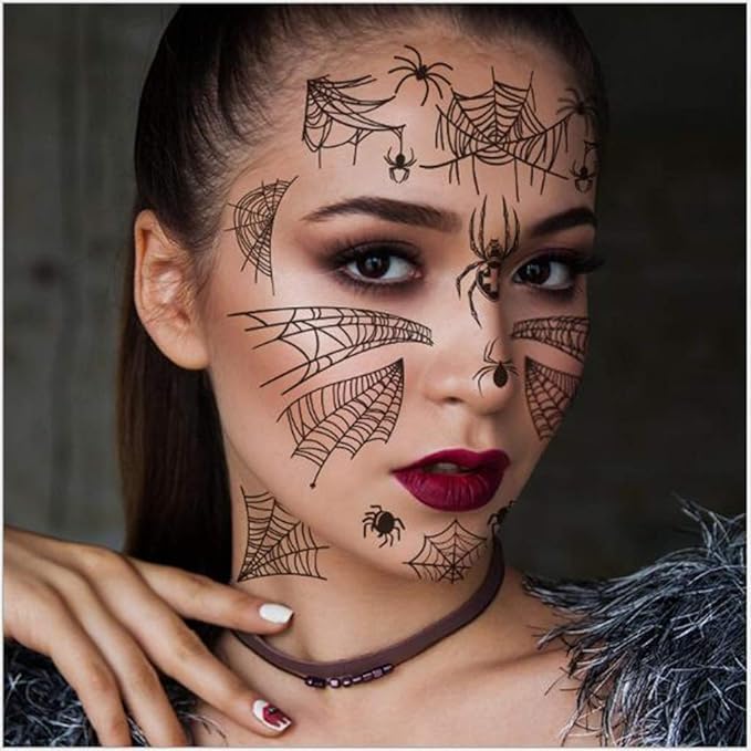 Autoadesivi Del Tatuaggio Del Fronte Di Halloween Della Ragnatela Adesivo Viso Trucco Divertente Scuro Pipistrello Impermeabile Adatto Per Concerti Musicali Carnevali Matrimoni Halloween Amazon It Sport E Tempo Libero