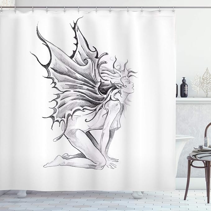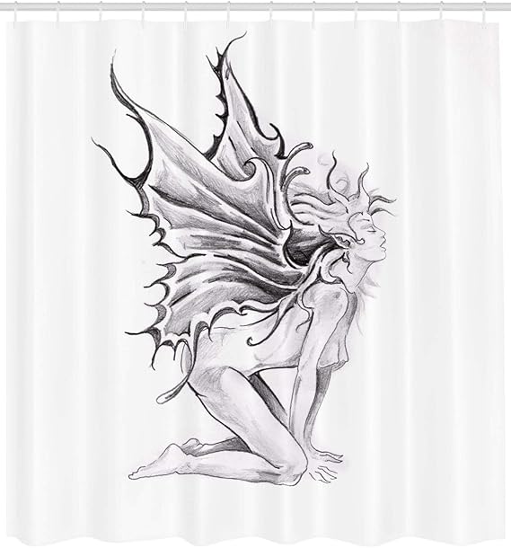 Abakuhaus Tatuaggio Tenda Da Doccia Angeli Disegno A Matita Tessuto Set Di Decorazioni Per Il Bagno Con Ganci Per La Vasca Da Bagno 175 Cm X 220 Cm Bianco E Nero Amazon It Casa E Cucina