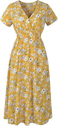 Abiti Estivi Donna Disegni Floreali Vita Alta Una Linea Include Abiti Comodo Outdoor Arricciati Manica Corta Scollo A V Abiti Eleganti Eleganti Da Spiaggia Alla Moda Per Le Donne Amazon It Abbigliamento