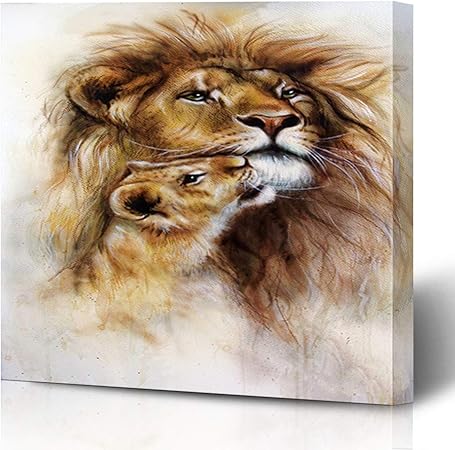 Ahawoso Stampa Artistica Su Tela 40 6 X 40 6 Cm Pittura Su Tela Con Aerografo Con Leone E Leone E Leone Decorazione Realistica Per Soggiorno Ufficio Camera Da Letto Amazon It Casa E Cucina