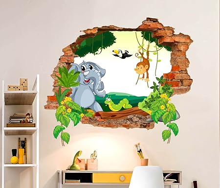 Adesivi Murali Effetto Buco Nel Muro 3d Elefantino Scimmietta E Lombrico Decorativo Cameretta Bambini Adesivo Murale Disegni Decorativi Wall Stickers Adesivi Murali Decorazione Cameretta Nursery Amazon It Casa E Cucina