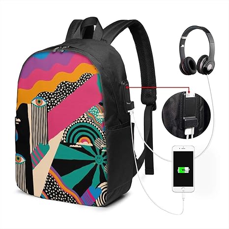Zaino Da Disegno Astratto Per Bambini Impermeabile Con Porta Di Ricarica Usb E Porta Per Cuffie Adatto Per Computer Portatili Da 17 Pollici Zaino Da Viaggio Zaino Scolastico Per Uomini E Donne