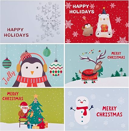 Howaf 36 Pacco Cartoline Di Natale Buon Natale Auguri Biglietti In 6 Disegni Con Buste E Adesivi 3 3 X 4 5 Pollici Amazon It Giochi E Giocattoli