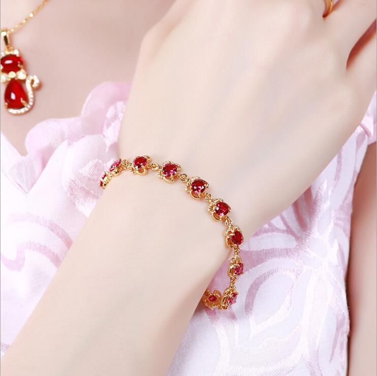 Acquista Loro Elegante Ha Placcato I Braccialetti Sintetici Rossi Verdi Smeraldo Dei Braccialetti Di Catene 18cm Di Disegni Semplici Dei Monili Dorati Allingrosso Della Mano A 2 12 Dal Jane012 Dhgate Com