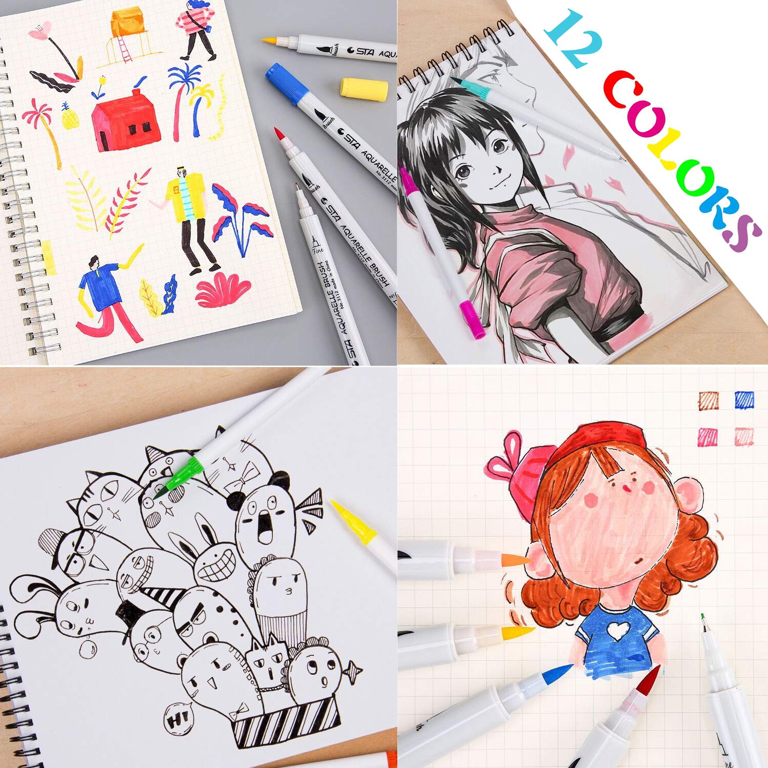 Pmzzplvds 12 24 36 48 Colori Che Scrivono Pennarelli Calligrafici Per Dipingere Disegni Disegno Pittura Amazon It Sport E Tempo Libero