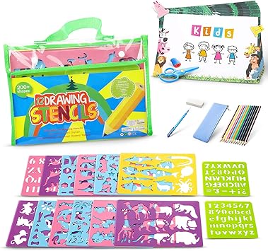 Lenbest Kit Di Stencil E Disegno Kit Completo Per Bambini Oltre 200 Forme Con 12 Stencil Grandi E 2 Piccoli 12 Matite Colorate E 1 Matita Portamine Giocattolo Educativo Per Bambini Amazon It Giochi E Giocattoli