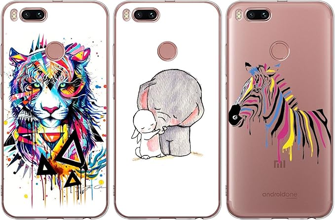 Custodia Per Xiaomi Mi A1 3 Pezzi Con Disegni Colorati Kawaii Resistente Agli Urti Flessibile In Gomma Tpu Ultra Sottile Con Coniglio Zebra Colorata Leone Geometrico Amazon It Elettronica