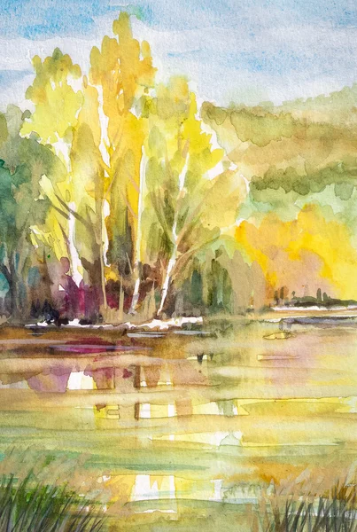 Acquerello Disegno Di Paesaggio Con Albero Vicino Al Fiume Immagini Vettoriali Stock E Altre Immagini Di Acqua Istock